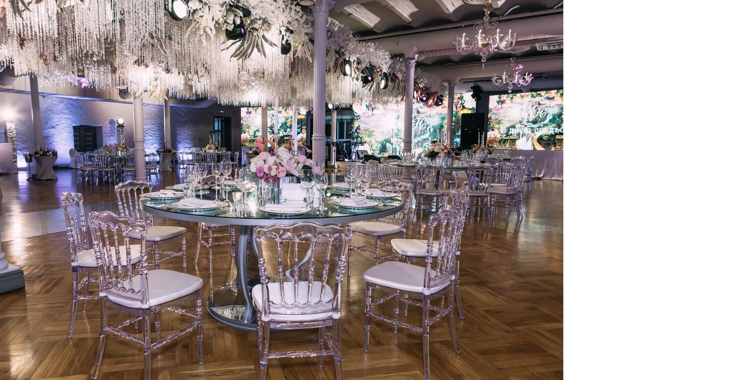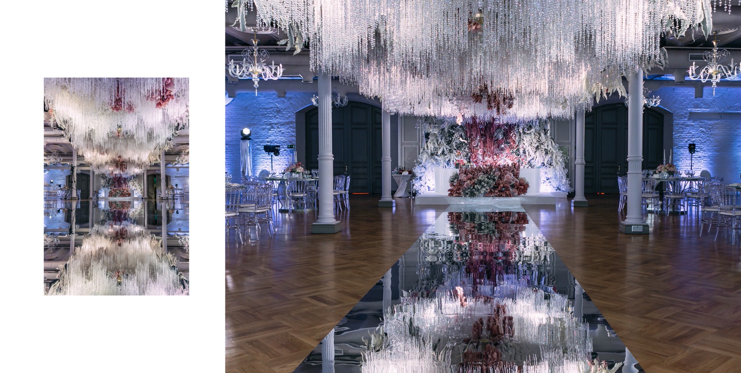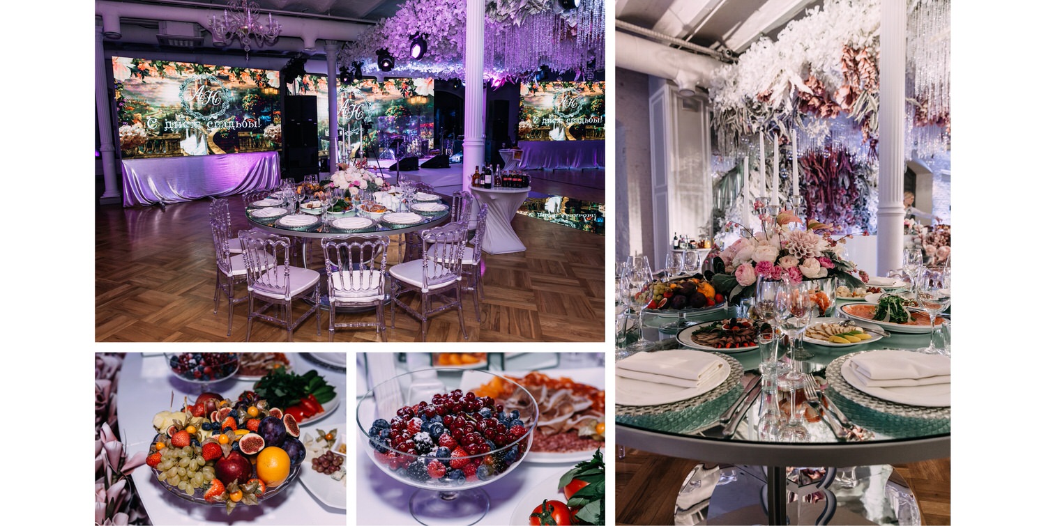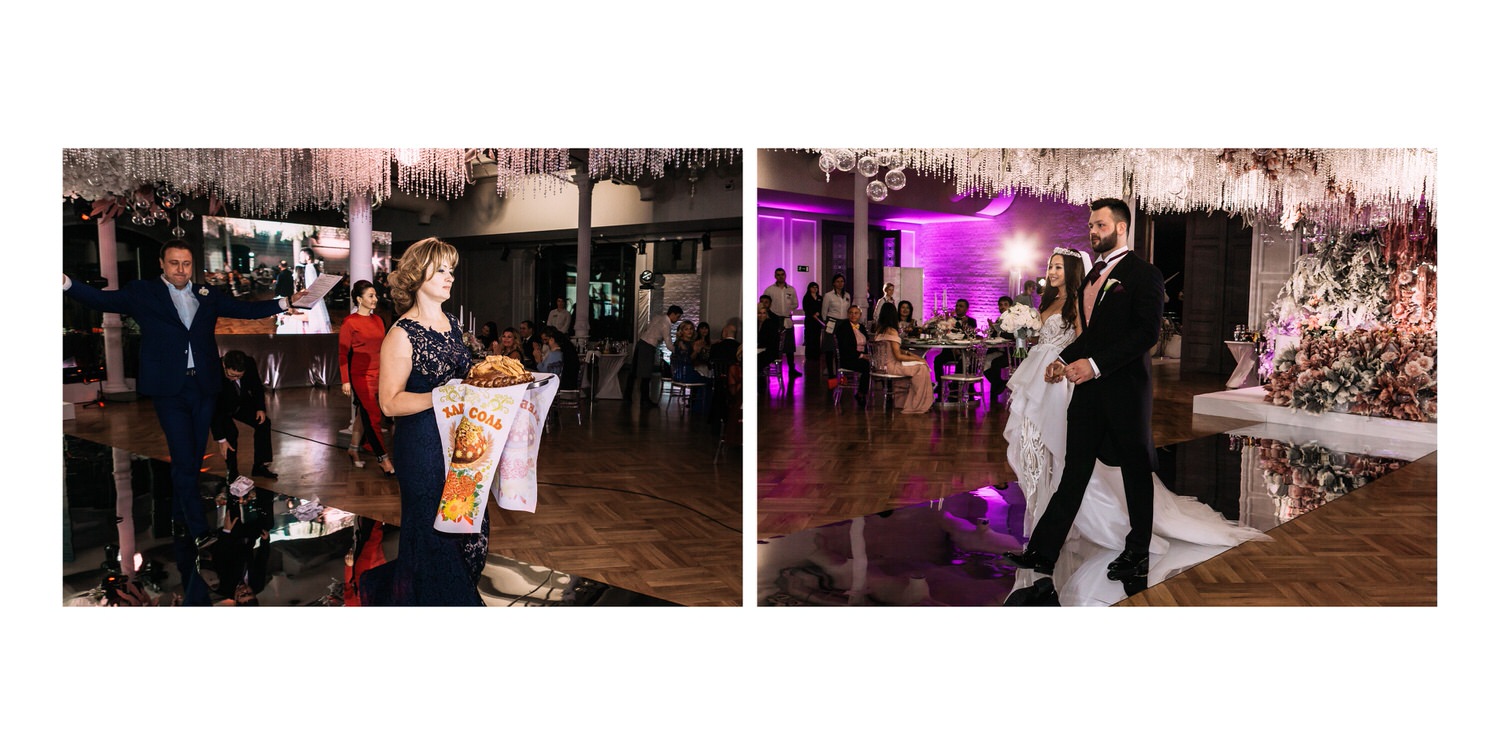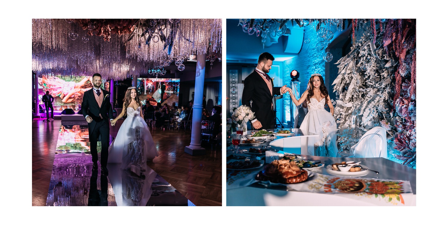 Весь день свадьбы N&A мы фотографировали перемещаясь с одной площадки на другую – погода была прохладная и дождливая. Фотосессия сборов жениха и невесты прошла в домах в район Истры. Затем мы отправились на короткую фотосессию молодоженов вдвоем в номер гостиницы St Regis Никольская. К 18-00 гости уже собрались в банкетном комплексе ШЕЛК и ожидали начало церемонии. Свадьба проходила в нескольких залах – зал для фуршета, для церемонии и для банкета на 120 гостей. Юлия Шакирова декорировала простой белый лофт зал в шикарную зимнюю сказку. Повсюду кристаллы, сказочные цветы в холодных оттенках розового и серебристо-серого. Развлекали гостей ведущие Валерий Закутский и Анна Семенович, певец Доминик Джокер, Шоу-балет Алетейя.
