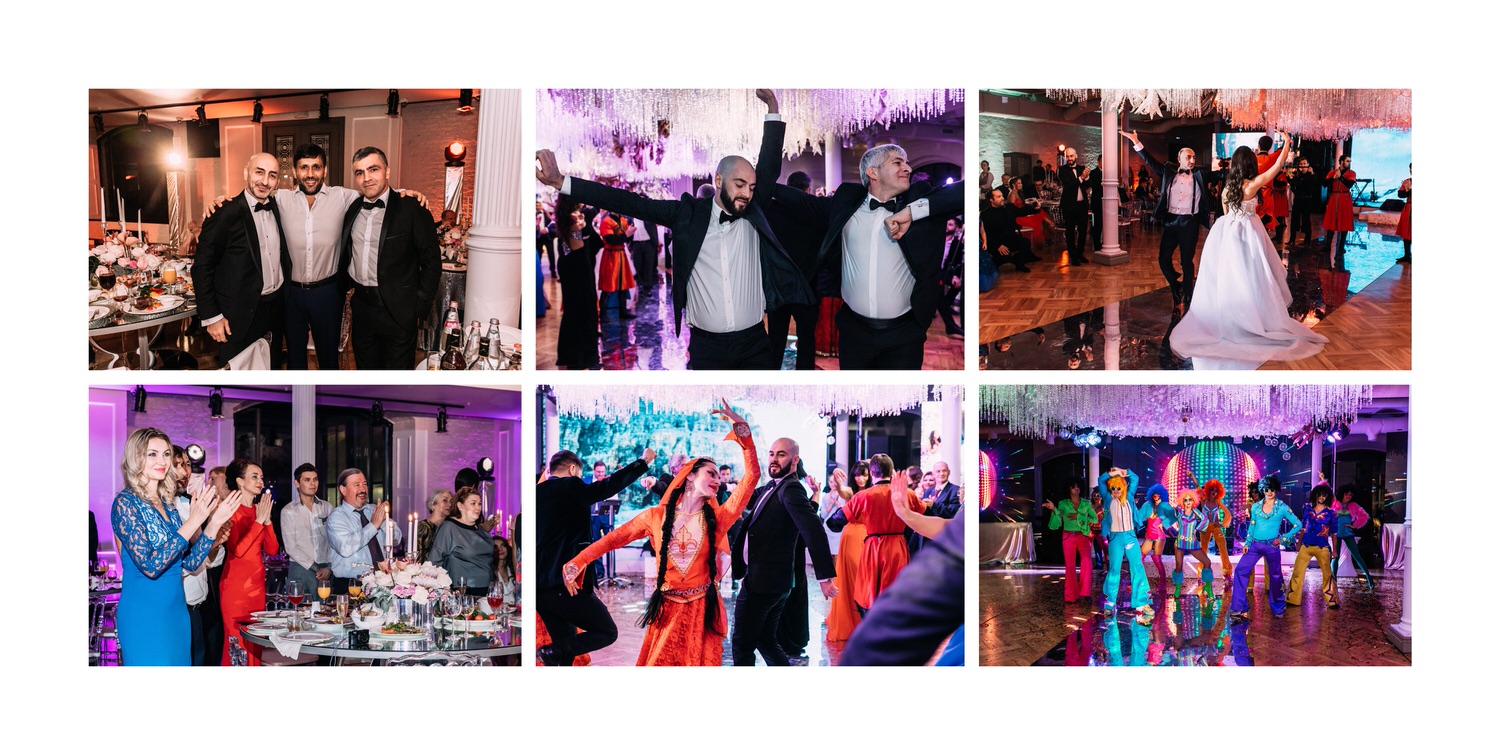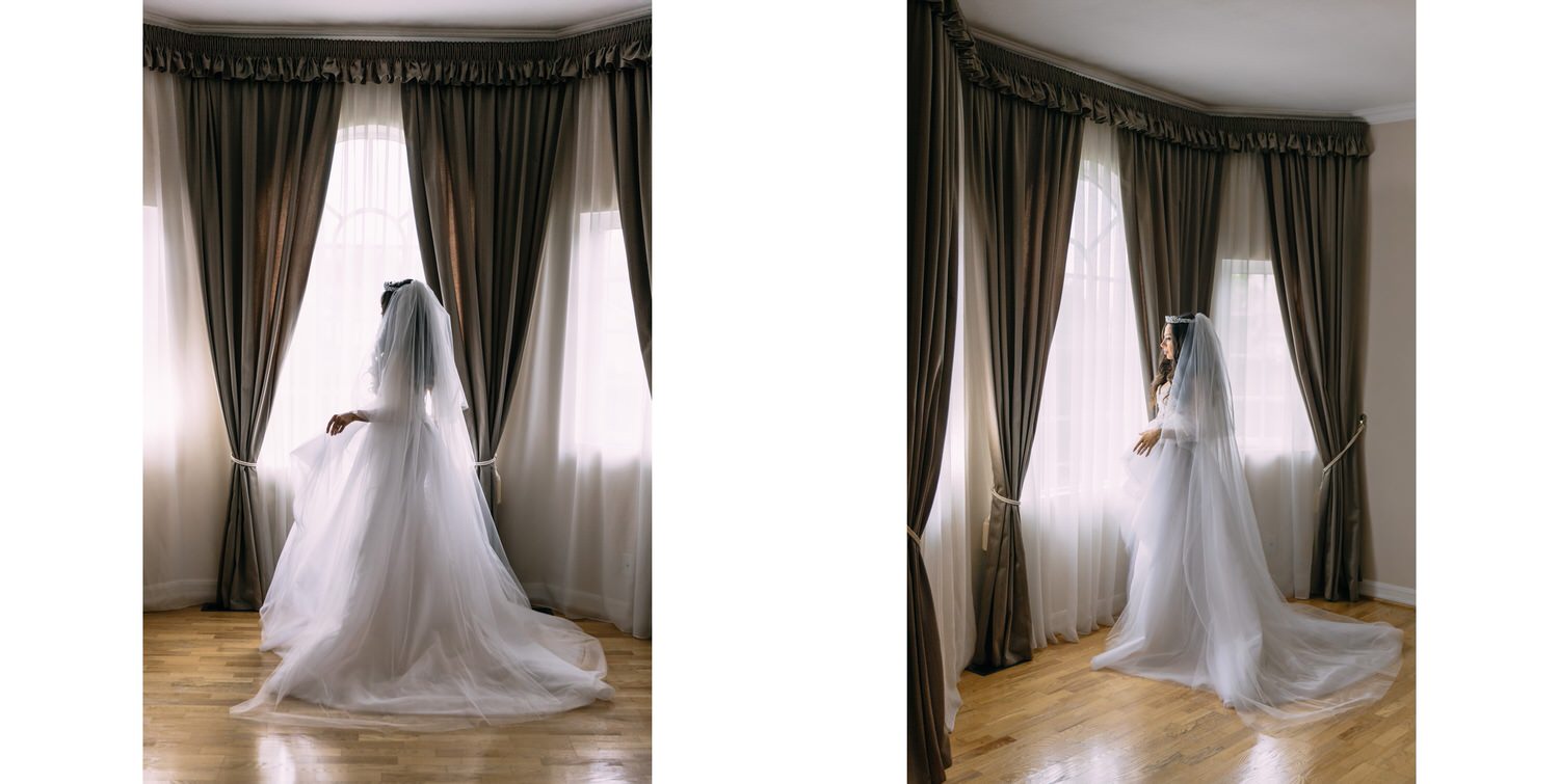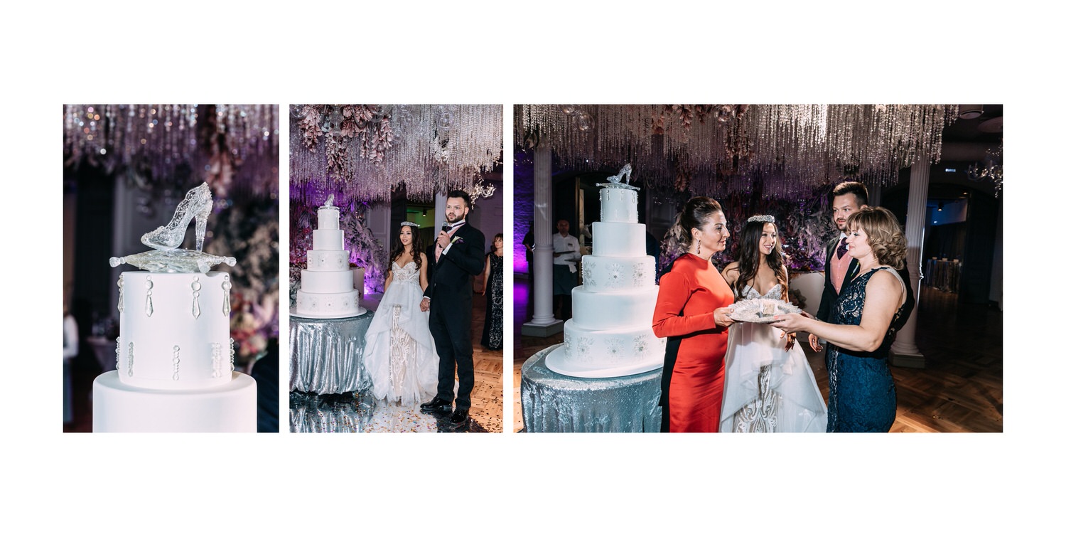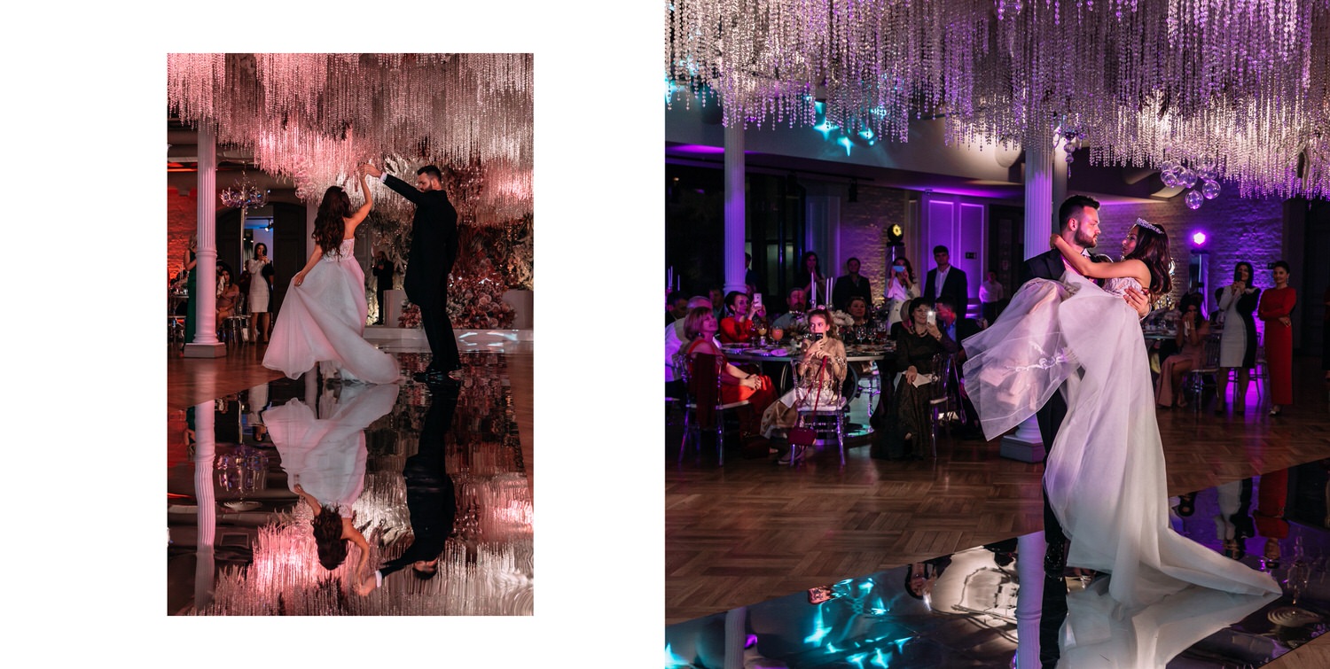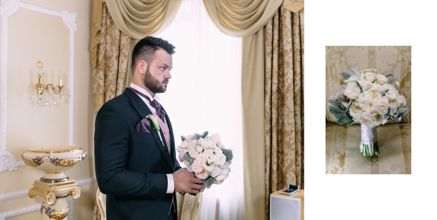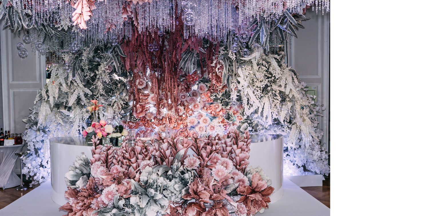 Весь день свадьбы N&A мы фотографировали перемещаясь с одной площадки на другую – погода была прохладная и дождливая. Фотосессия сборов жениха и невесты прошла в домах в район Истры. Затем мы отправились на короткую фотосессию молодоженов вдвоем в номер гостиницы St Regis Никольская. К 18-00 гости уже собрались в банкетном комплексе ШЕЛК и ожидали начало церемонии. Свадьба проходила в нескольких залах – зал для фуршета, для церемонии и для банкета на 120 гостей. Юлия Шакирова декорировала простой белый лофт зал в шикарную зимнюю сказку. Повсюду кристаллы, сказочные цветы в холодных оттенках розового и серебристо-серого. Развлекали гостей ведущие Валерий Закутский и Анна Семенович, певец Доминик Джокер, Шоу-балет Алетейя.