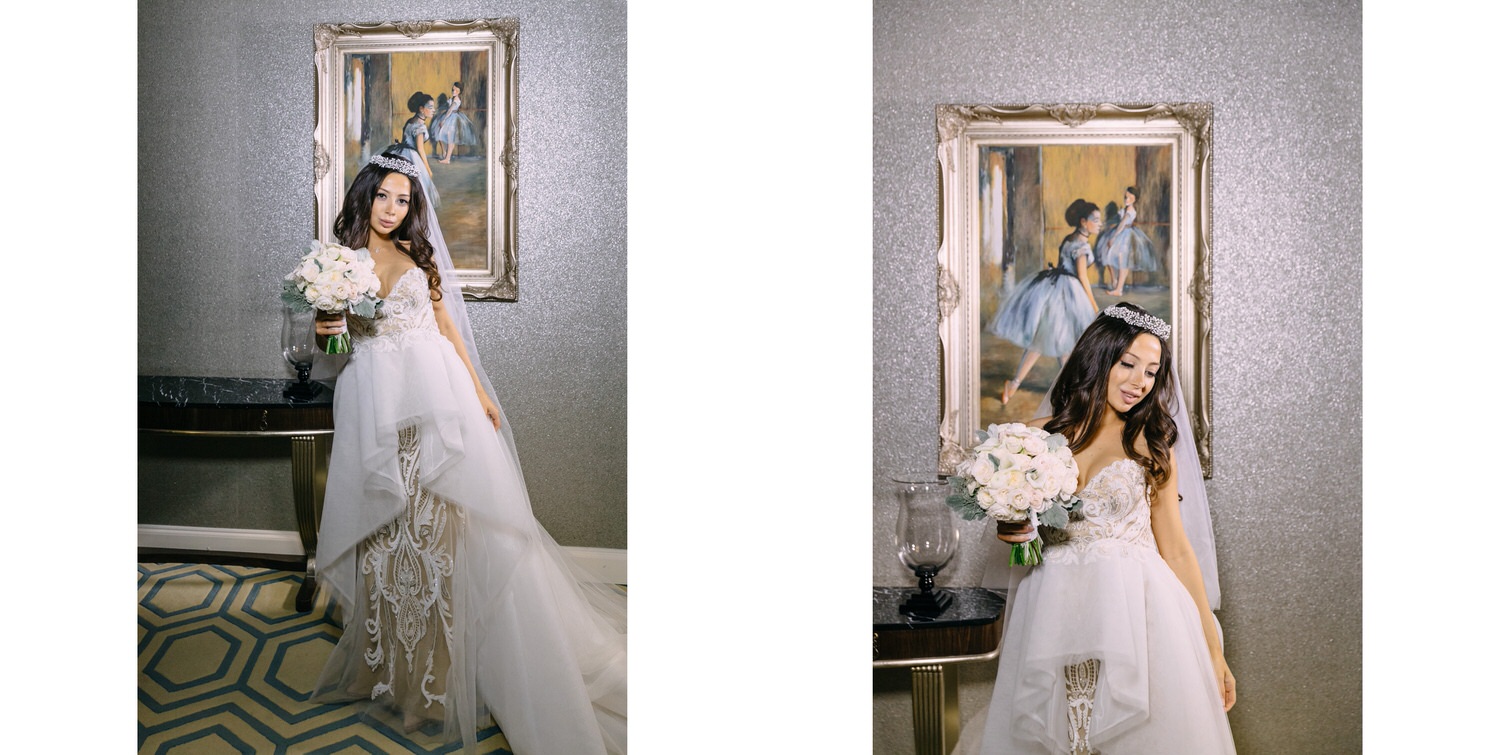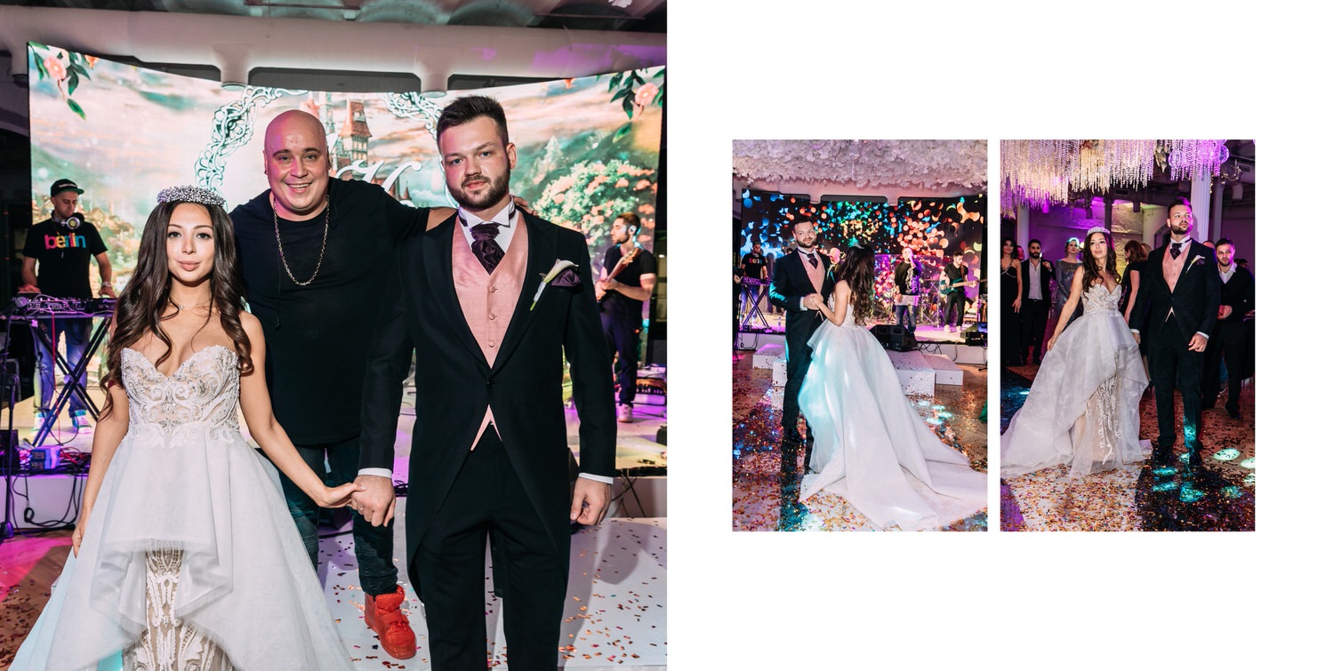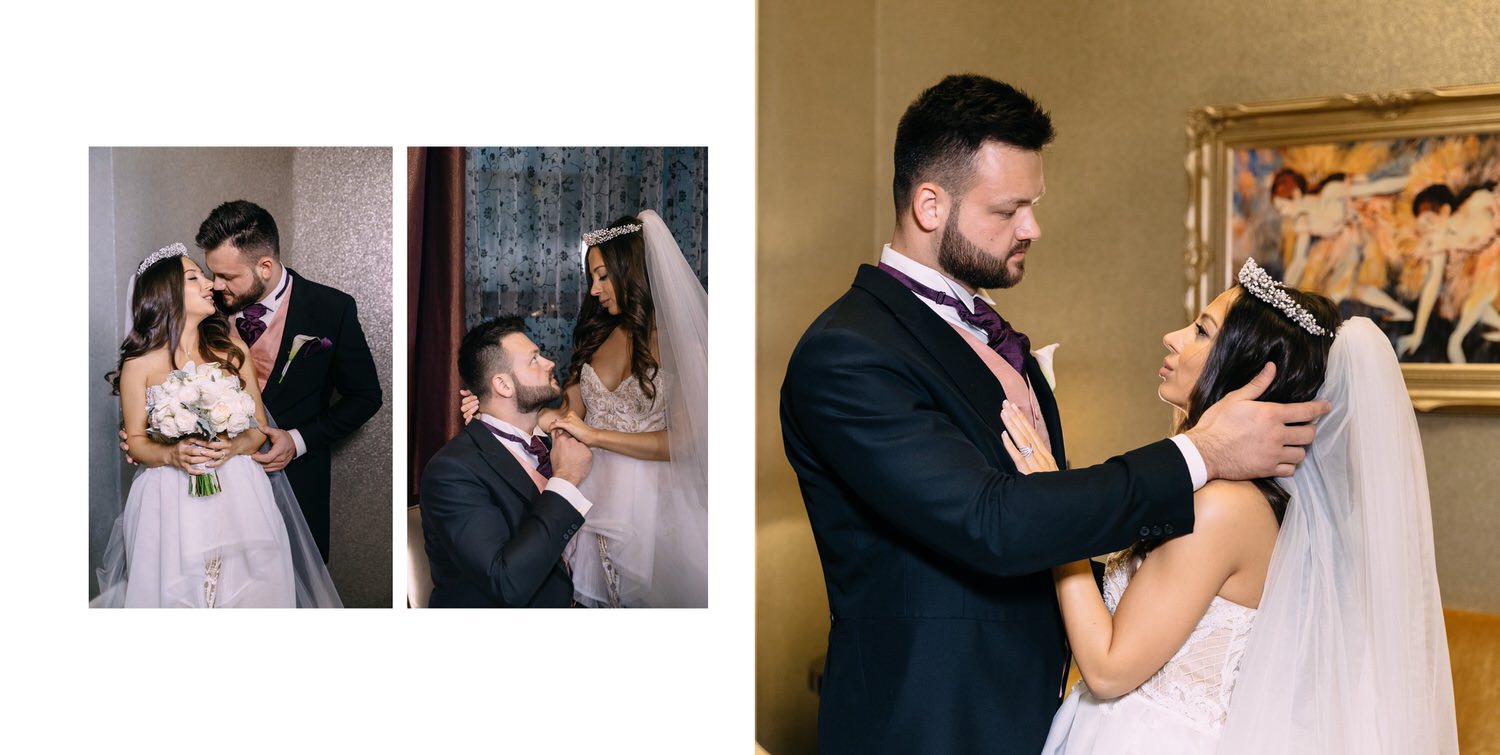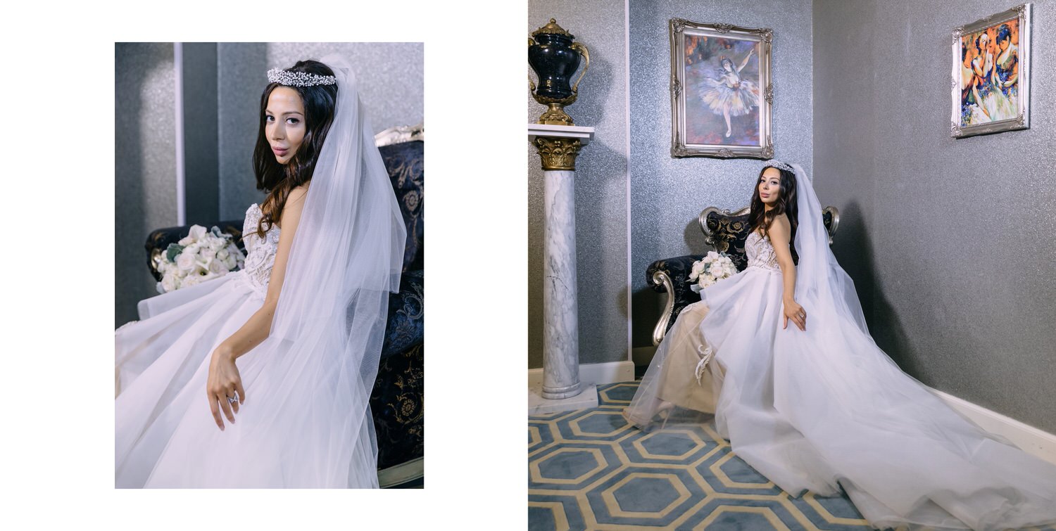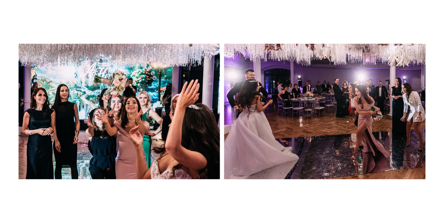 Весь день свадьбы N&A мы фотографировали перемещаясь с одной площадки на другую – погода была прохладная и дождливая. Фотосессия сборов жениха и невесты прошла в домах в район Истры. Затем мы отправились на короткую фотосессию молодоженов вдвоем в номер гостиницы St Regis Никольская. К 18-00 гости уже собрались в банкетном комплексе ШЕЛК и ожидали начало церемонии. Свадьба проходила в нескольких залах – зал для фуршета, для церемонии и для банкета на 120 гостей. Юлия Шакирова декорировала простой белый лофт зал в шикарную зимнюю сказку. Повсюду кристаллы, сказочные цветы в холодных оттенках розового и серебристо-серого. Развлекали гостей ведущие Валерий Закутский и Анна Семенович, певец Доминик Джокер, Шоу-балет Алетейя.