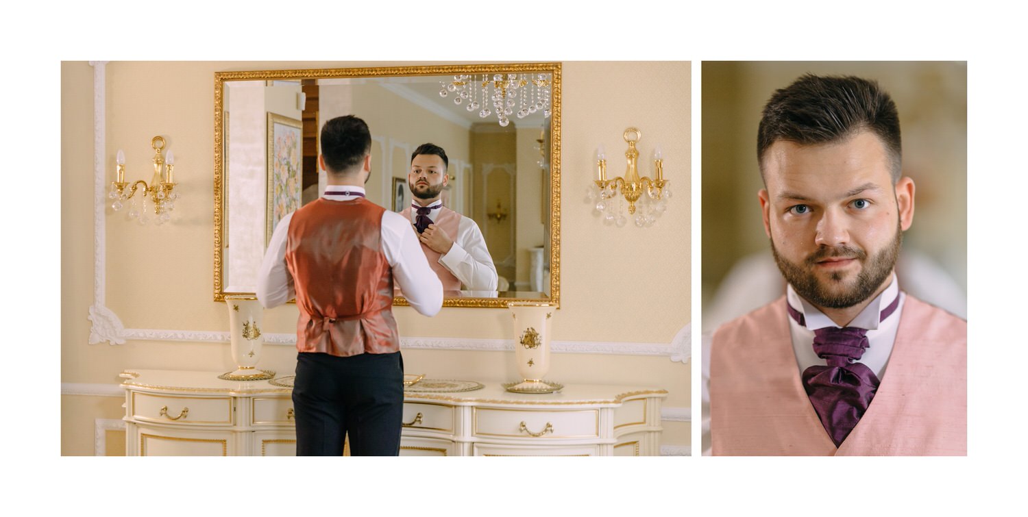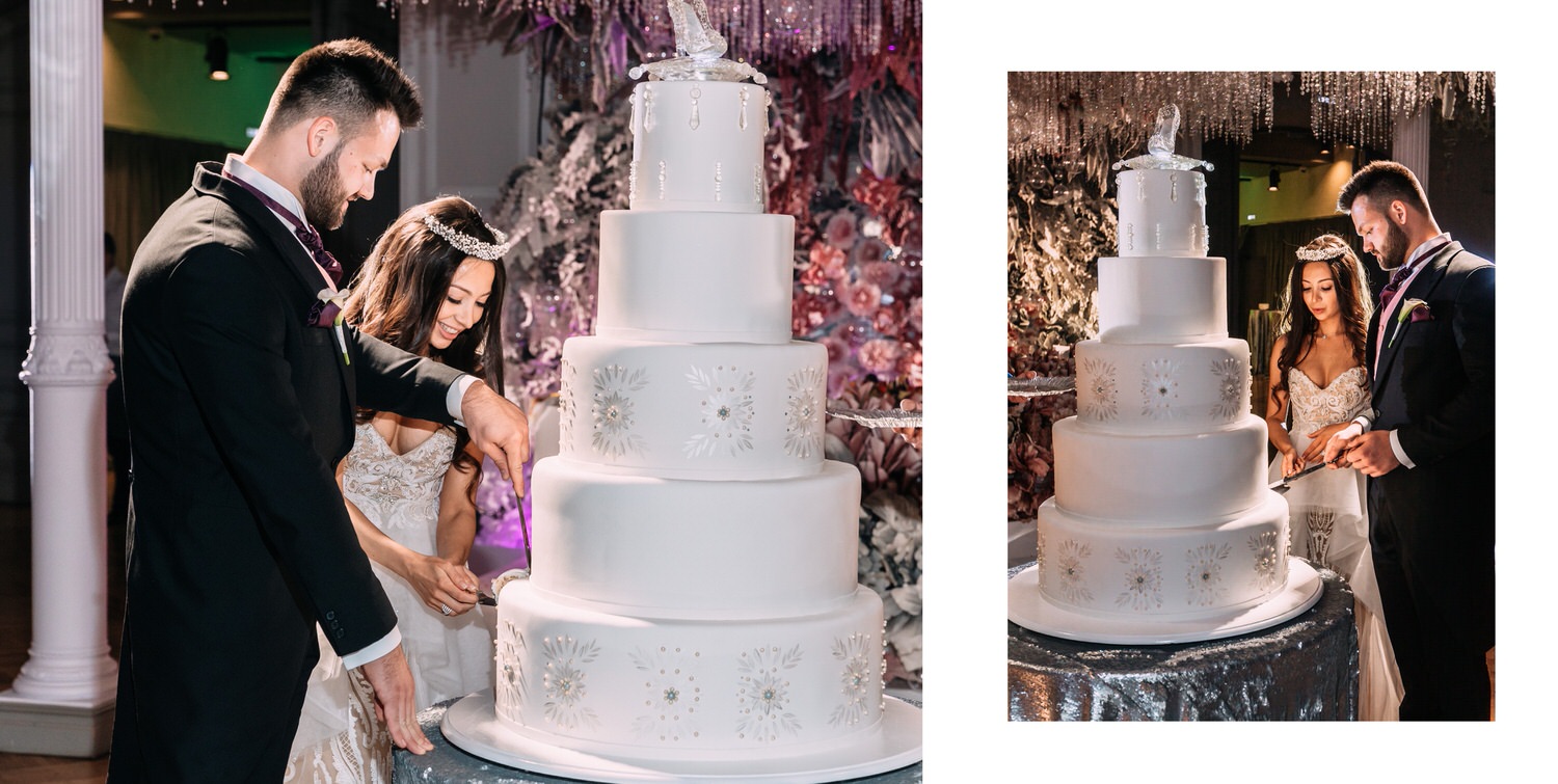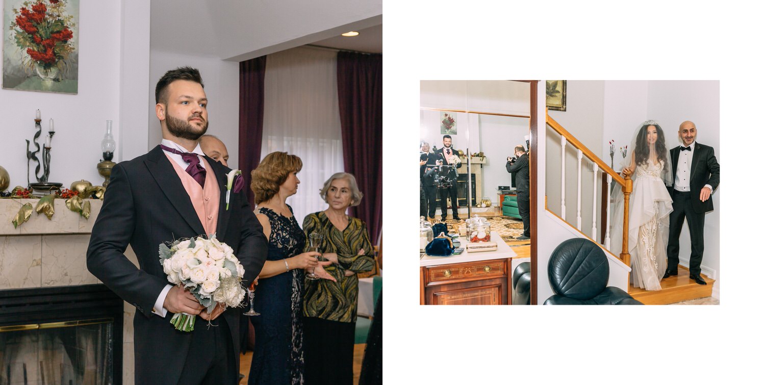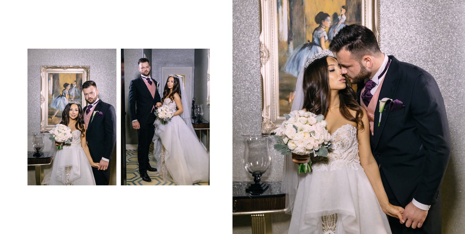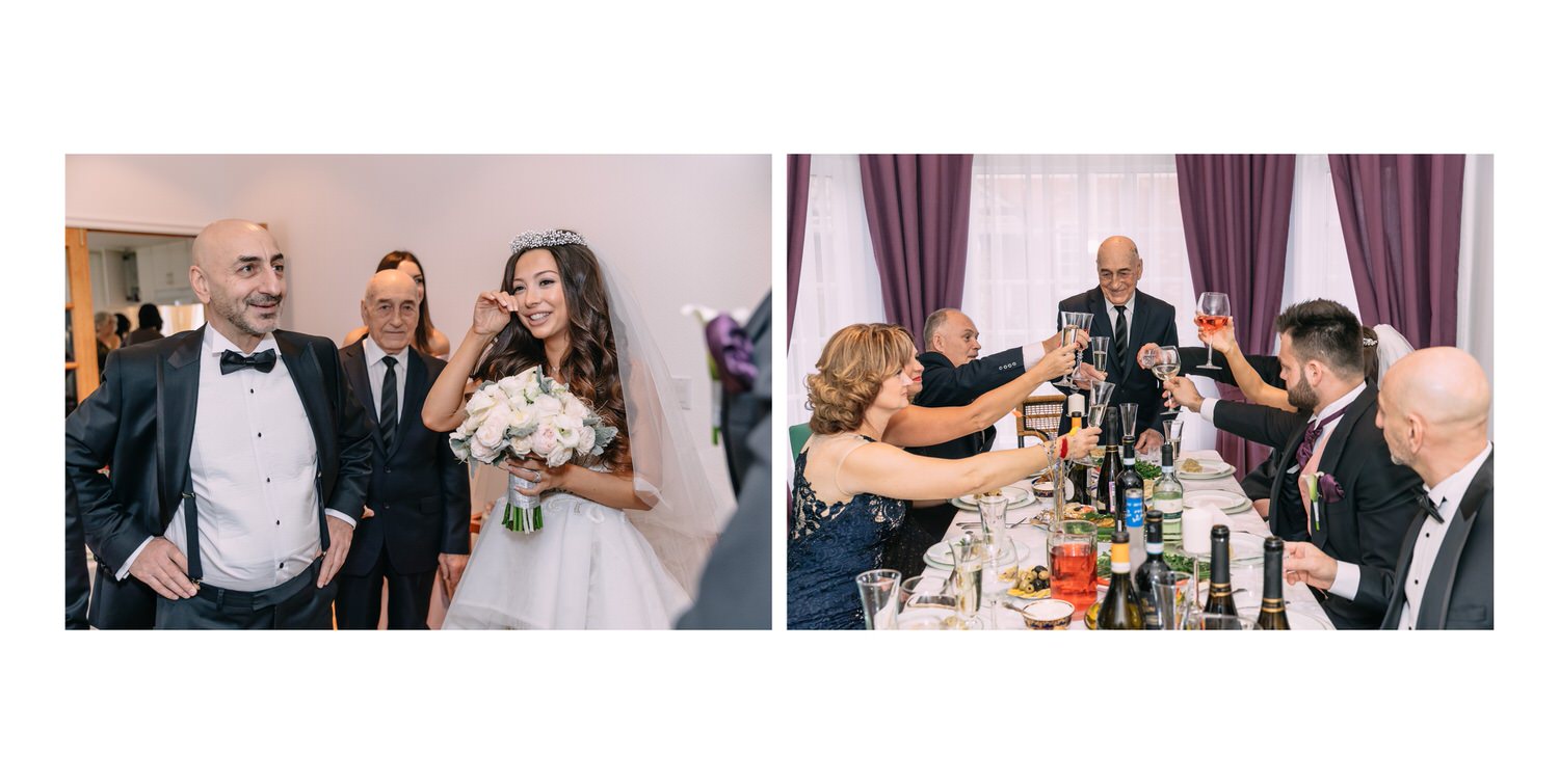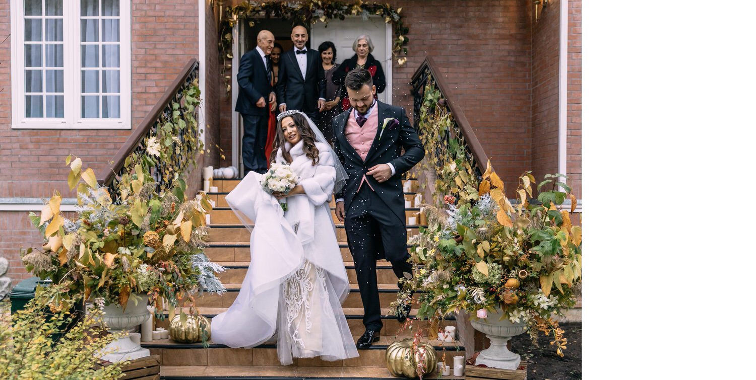 Весь день свадьбы N&A мы фотографировали перемещаясь с одной площадки на другую – погода была прохладная и дождливая. Фотосессия сборов жениха и невесты прошла в домах в район Истры. Затем мы отправились на короткую фотосессию молодоженов вдвоем в номер гостиницы St Regis Никольская. К 18-00 гости уже собрались в банкетном комплексе ШЕЛК и ожидали начало церемонии. Свадьба проходила в нескольких залах – зал для фуршета, для церемонии и для банкета на 120 гостей. Юлия Шакирова декорировала простой белый лофт зал в шикарную зимнюю сказку. Повсюду кристаллы, сказочные цветы в холодных оттенках розового и серебристо-серого. Развлекали гостей ведущие Валерий Закутский и Анна Семенович, певец Доминик Джокер, Шоу-балет Алетейя.