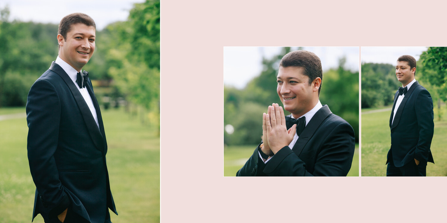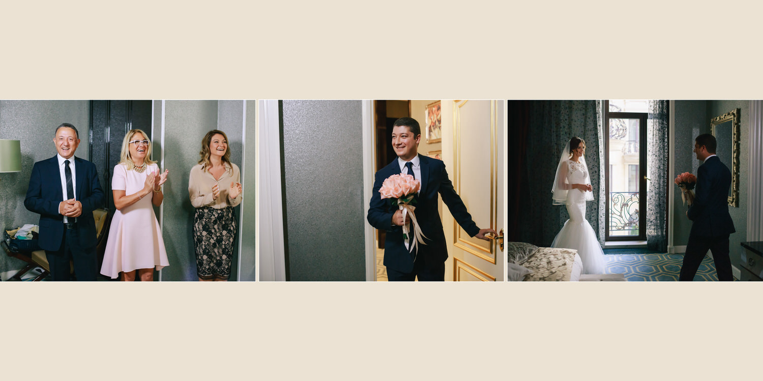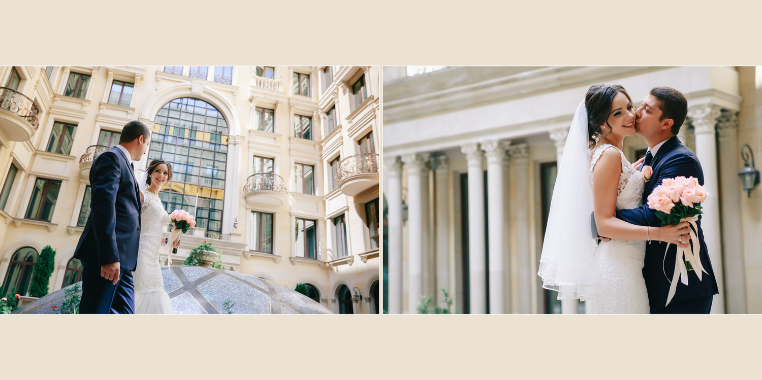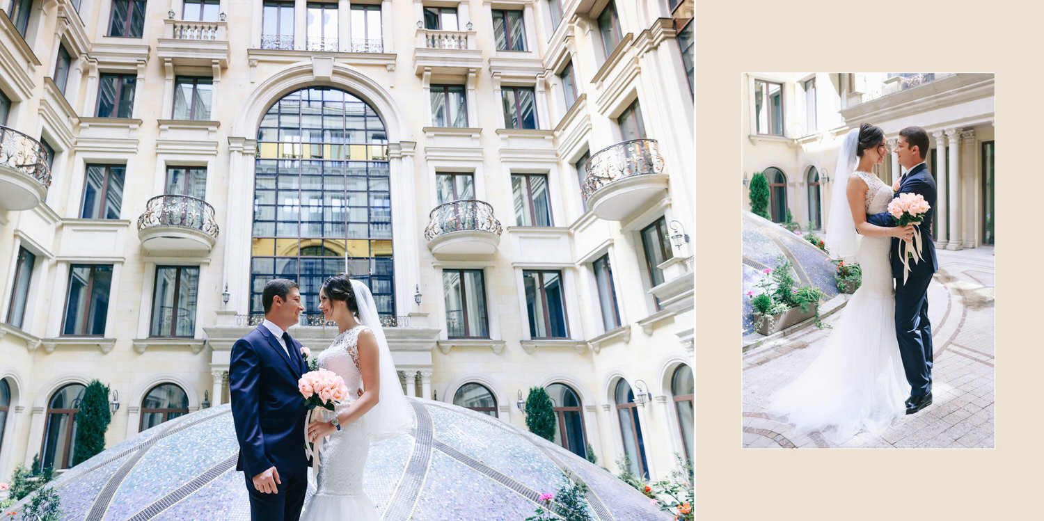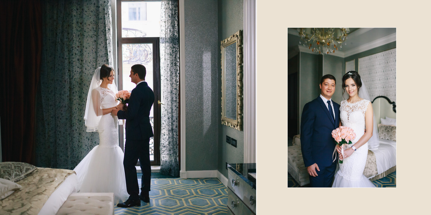 Первый день мы начали снимать в гостинице St Regis Никольская в Москве. Интерьер двухкомнатного номера для молодоженов располагал к спокойной съемке сборов невесты. Снимали мы вдвоем с оператором Сергеем Лебедевым, а также у каждого из нас было по ассистенту. Тем не менее в номере нашлось нам всем нашлось место даже когда приехали родители жениха и невесты. Фотосессию мы продолжили во внутреннем дворике гостиницы. А затем, так как жених иностранец, поехали на роспись не в ЗАГС, а в Дворец Бракосочетаний 4 на Бутырской улице. В будний день во дворце наша пара была единственной и мы смогли сделать прекрасные семейные фотографии. Отпраздновать бракосочетание отправились в ресторан Vодный на берегу Москва-реки, где на фоне шикарных яхт провели небольшую фотосессию.