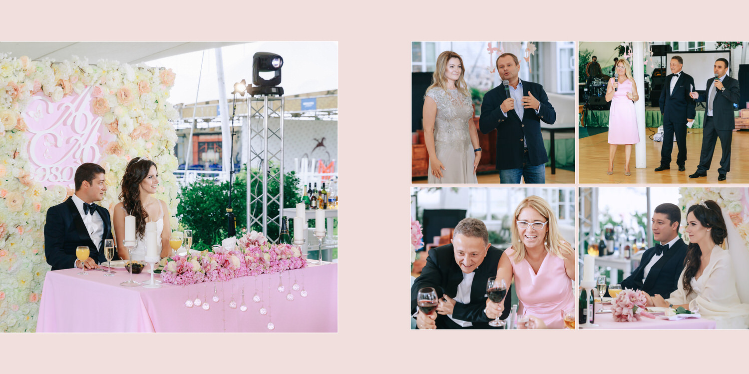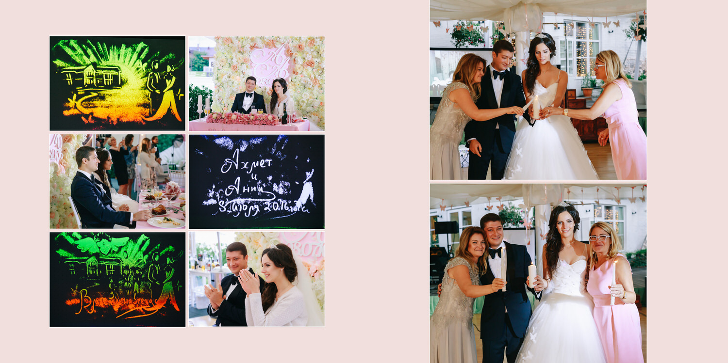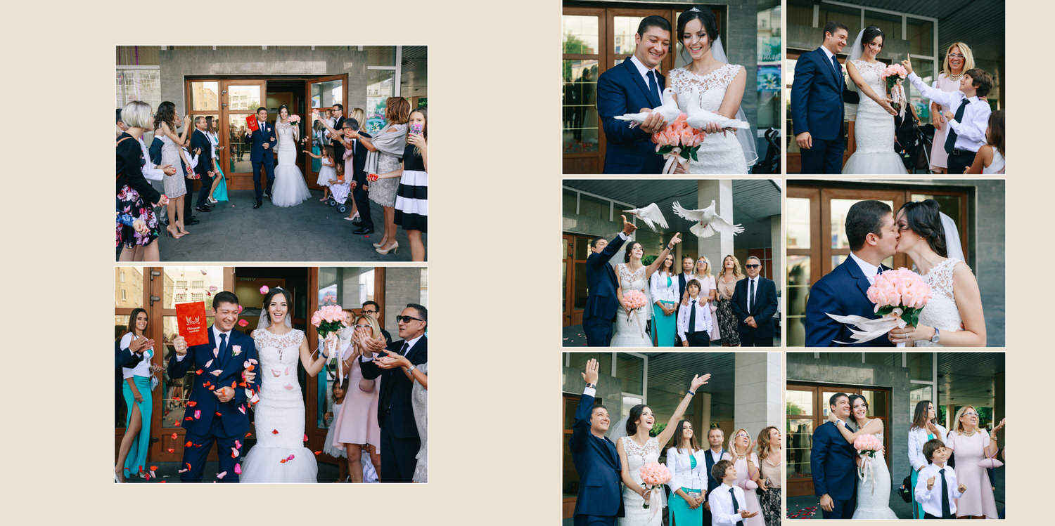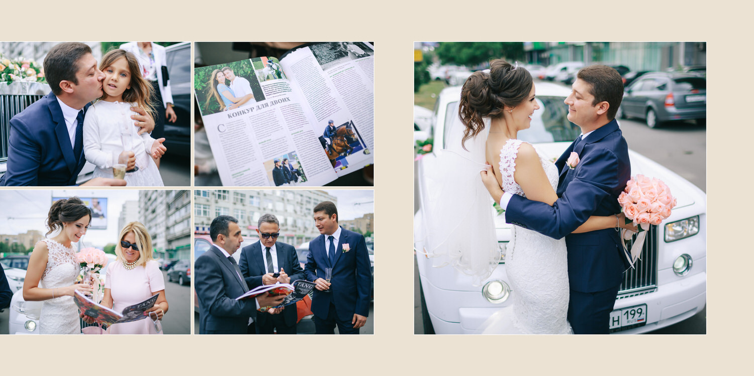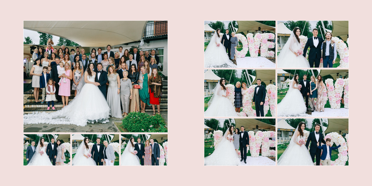 Спасибо, что посмотрели весь свадебный альбом! Это 70 разворотов свадебной фотокниги. Два дня свадьбы в Москве в 140 страницах фотокниги.