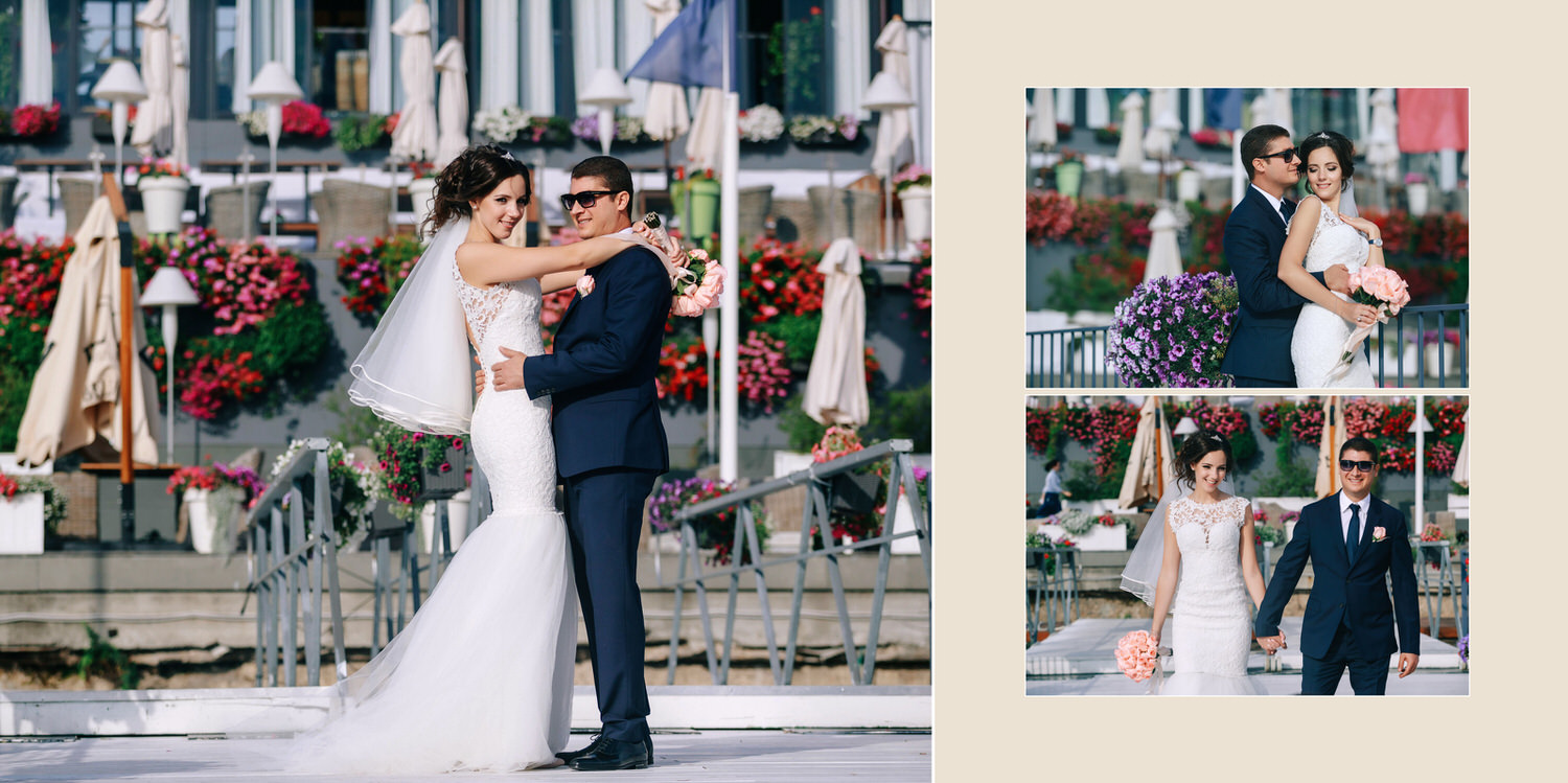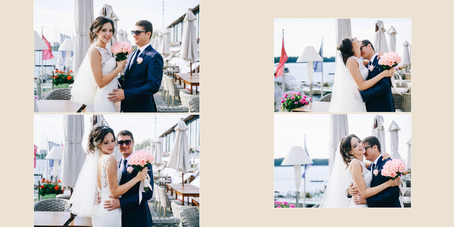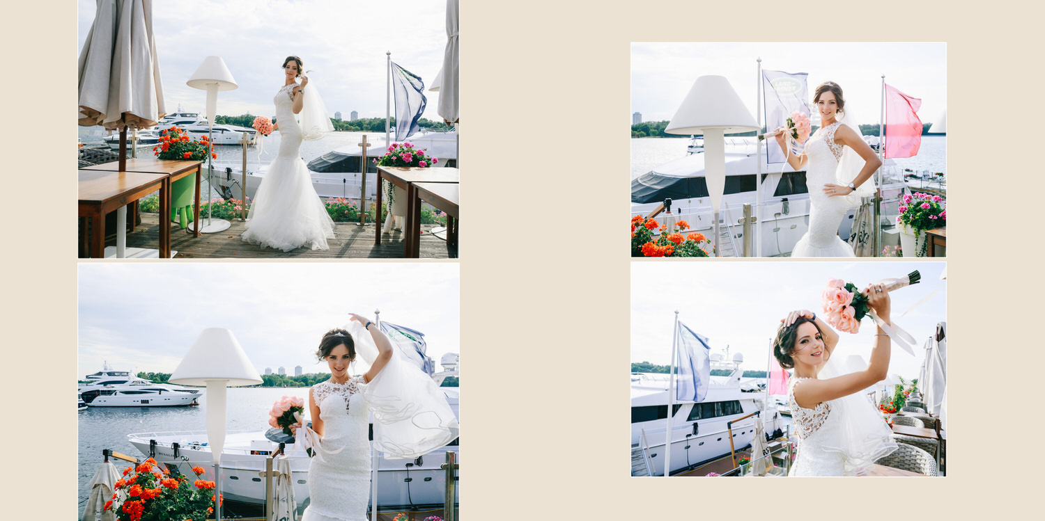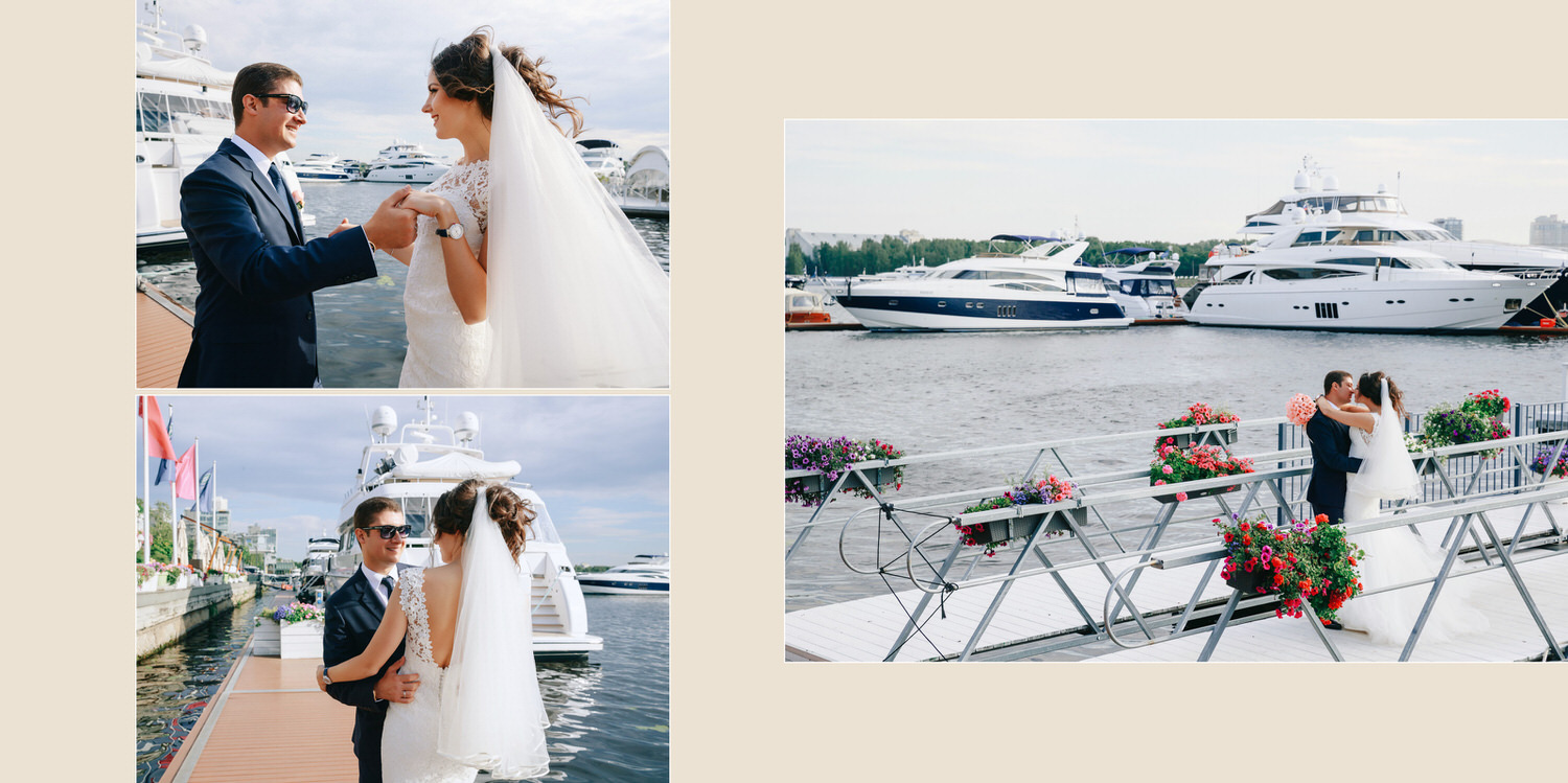В первый день свадьбы мы фотографировали роспись в ЗАГС, фотосессию в яхт-клубе ресторана Vодный, а во второй день – состоялась полноценная свадьба с гостями в КСК Отрада.
